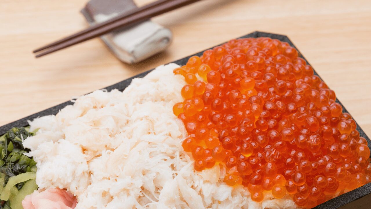 新鮮なカニの身と、プチプチとした食感が魅力のイクラが絶妙に組み合わさり、口の中で広がる濃厚な旨味を堪能できます。